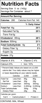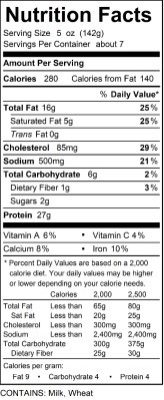 | Ingredients | Sauce (Milk (Grade A Reduced Fat Milk, Vitamin A Palmitate, Vitamin D3), Butter (Cream), Enriched Unbleached Wheat Flour (Wheat Flour, Malted Barley Flour, Niacin, Iron, Thiamine Mononitrate, Riboflavin, Folic Acid), Garlic, Lemon Juice), Salt, Seasoning), Whole Chicken (Whole Chicken, Blended Oil (Soybean Oil 80%, Pomace Olive Oil 20%), Salt, Seasoning) |