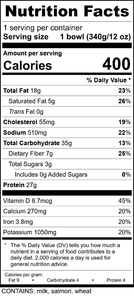 A power bowl featuring Atlantic salmon, ancient grains, aged pecorino Romano cheese, and perfectly cooked swiss chard and spinach.