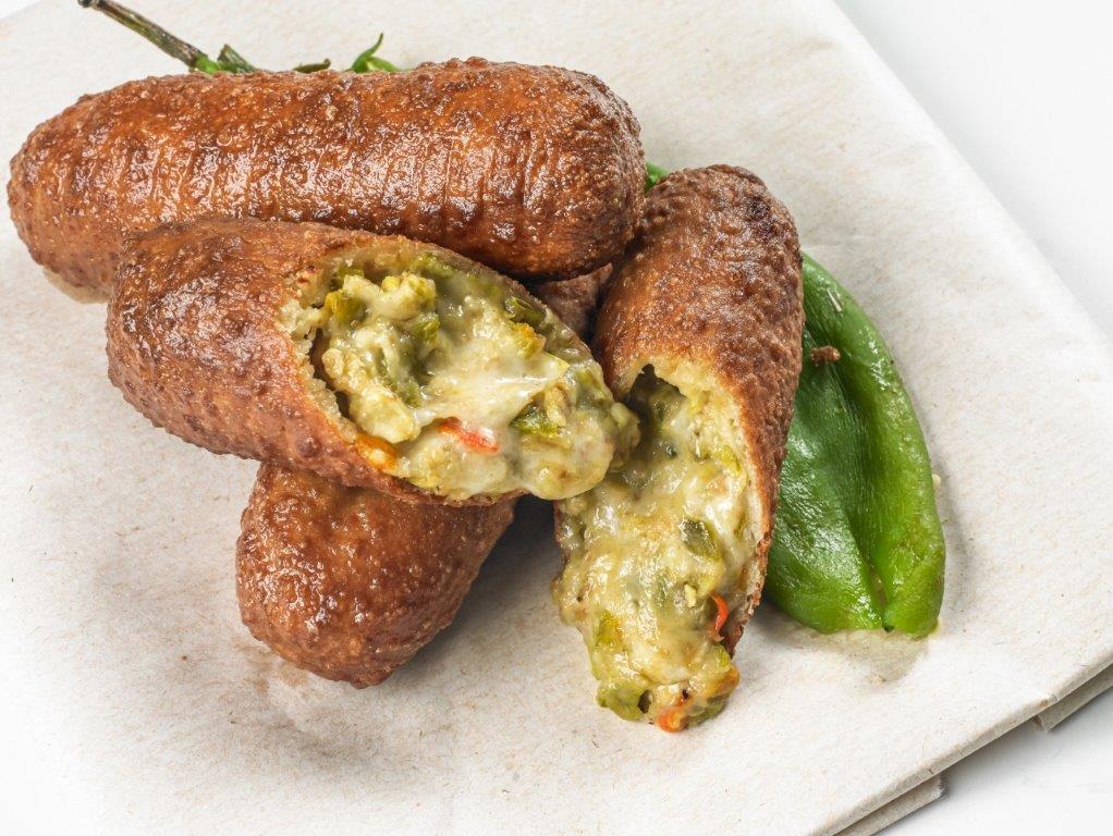 A tantalizing all-natural treat, consisting of hatch green chili smothered with Monterey Jack cheese and wrapped and fried in a crispy egg roll wrapper.